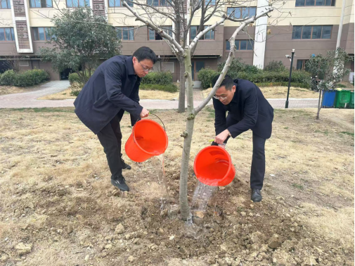 活动当日,在党支部的组织带领下,党员们充分发挥先锋模范作用。党员与志愿者们挥舞铁锹、深挖树坑,将冬青树、果树等约30棵树植入坑中,培土、浇水,确保每一棵树都能稳稳扎根土地。通过此次植树活动,不仅能改善园区的生态环境,更是将绿色发展理念深深植入园区。